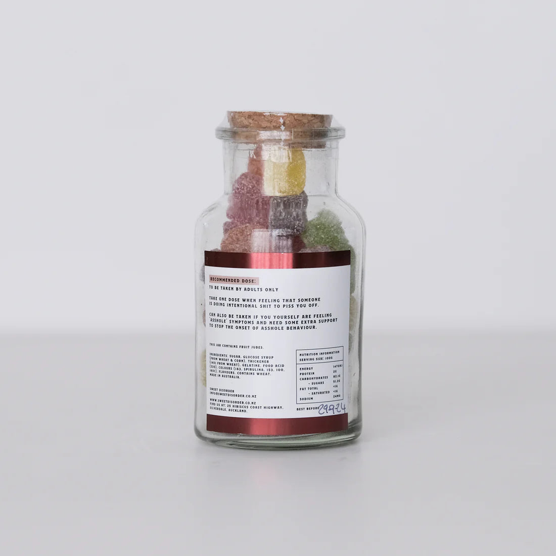 Contains hard fruit jubes, made in Australia