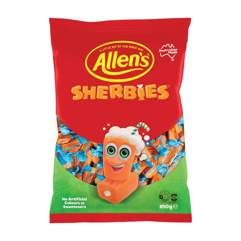 Satisfy your sweet tooth with Allen's Sherbies! Chew through the tangy orange flavour to reach the exciting fizzy sherbet centre. With 850g of deliciousness, this treat is perfect for sharing with family and friends.