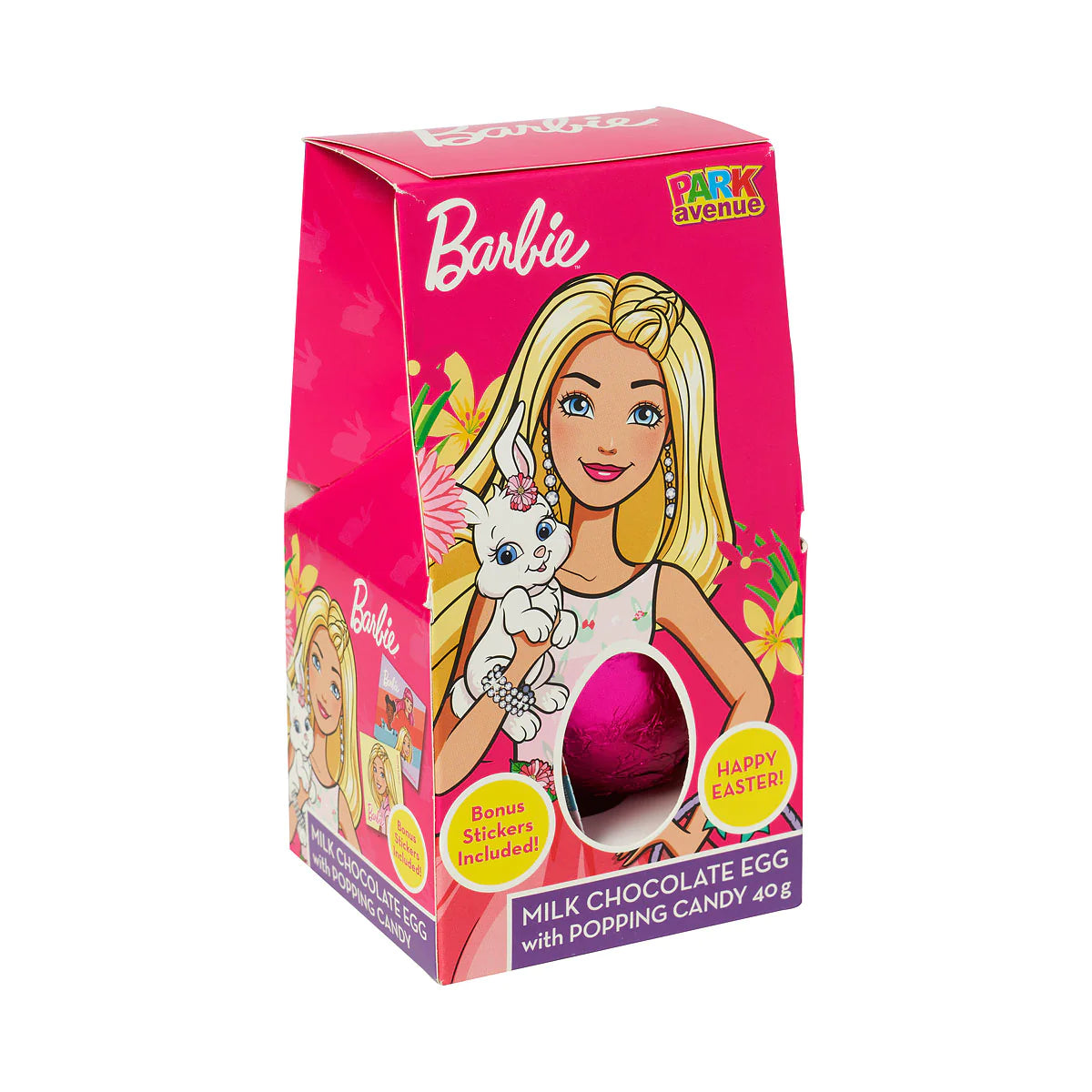 This delightful surprise contains a vibrant egg packed with yummy popping candy. And as a bonus, every egg comes with a collectible Barbie sticker!