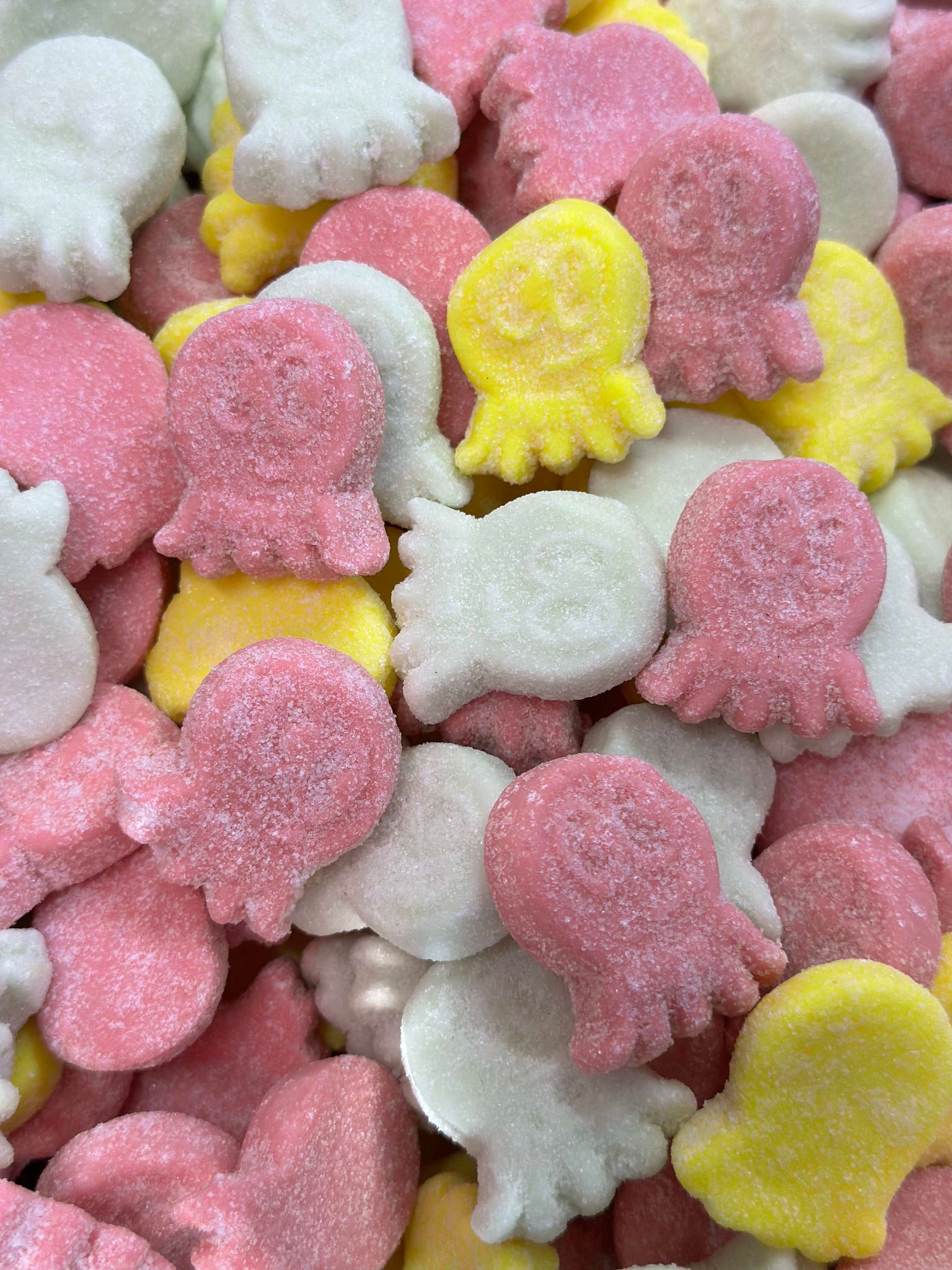 150g- Get ready for a burst of tangy-sweet goodness with BUBS - SOUR OCTOPUS! Experience the soft and foamy exterior followed by a punch of sour flavour that will make your taste buds dance with excitement.