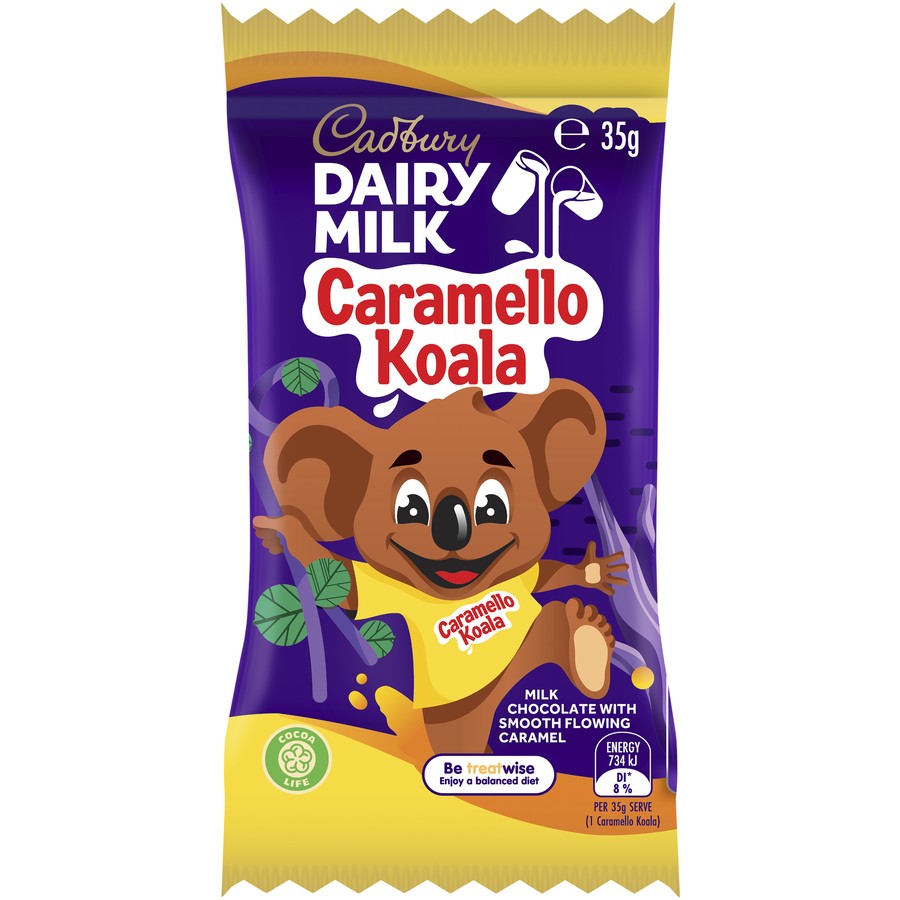Fun Caramello Koala treat with milky goodness of creamy Cadbury Dairy milk milk chocolate with smooth flowing caramel filled centre