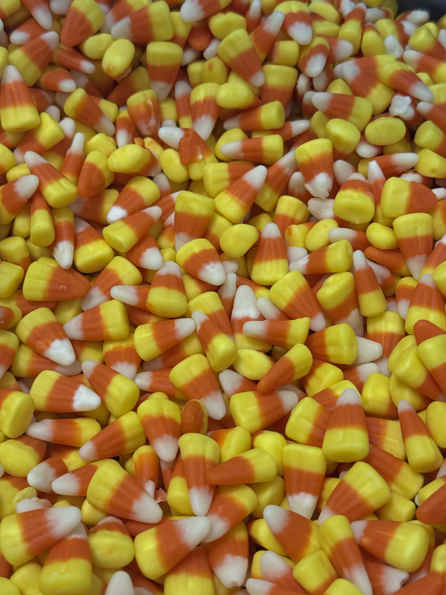 Candy corn is a type of small, pyramid-shaped candy, typically divided into three sections of different colours, with a waxy texture and flavour based on honey, sugar, butter and vanilla.
