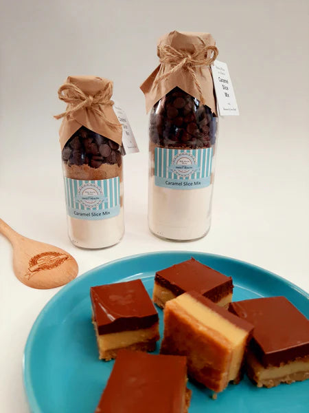 Delicious CARAMEL SLICE Baking Mix is available in two convenient sizes