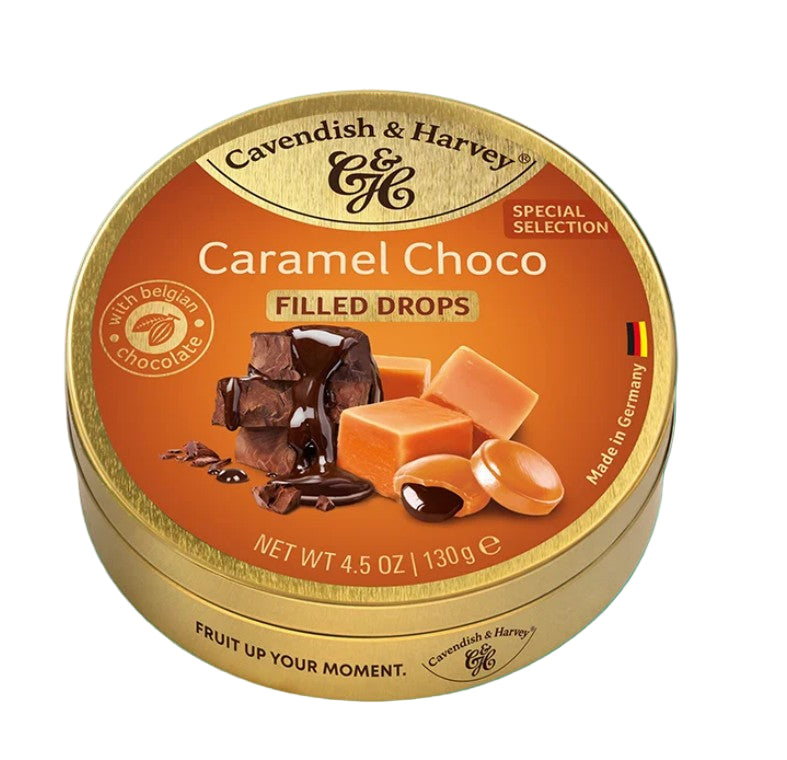 Discover the art of caramel with this exquisite composition for unforgettable moments of intense pleasure. Fine Caramel Drops infused with rich Belgian chocolate and blended to create an exquisite harmony of sweet and bitter. The Drops are dusted with icing sugar and sealed in a premium gold tin for the highest quality freshness. Filled Caramel Drops – Delicious. Rich. Irresistible.