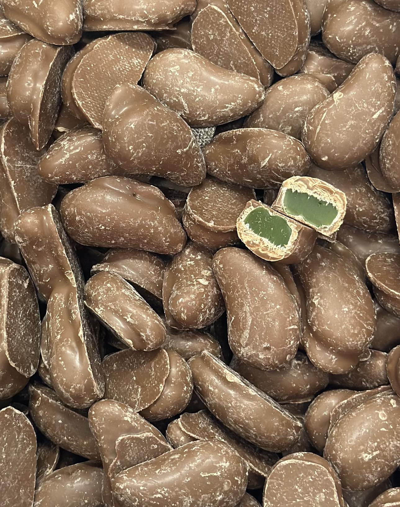 Spearmint flavoured; leaf shaped confection coated in milk chocolate