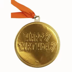 Chocolate Happy Birthday Medal Orange Ribbon 125mm