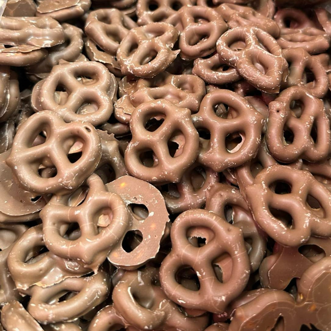Ingredients: Milk Flavoured Compound Chocolate 64% Sugar, MILK Solids, Vegetable Fat, Cocoa Powder, Cocoa Mass, Emulsifier (SOY Lecithin (322, 492), Salt. Contains Cocoa Solids 5%, MILK Solids 25%. Pretzels 36% Enriched WHEAT Flour, (WHEAT Flour, Niacin, Reduced Iron, Thiamine Mononitrate, riboflavin, Folic Acid), Corn Syrup, Salt, Vegetable Oil (corn, canola, or SOYBEAN), Sodium Bicarbonate, Yeast.