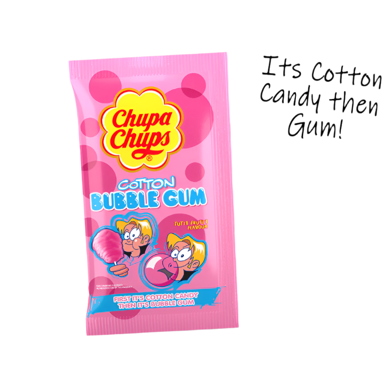First it's cotton candy, then it's bubble gum! Chupa Chups Cotton Candy Bubblegum is a delicious Tutti Frutti flavour bubble gum.