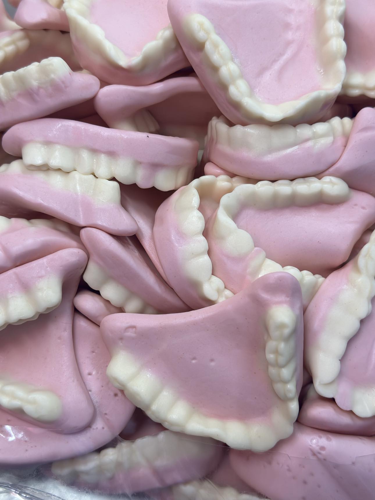150G - The Kingsway Dentures are an exhilarating treat, resembling a realistic set of teeth! They boast a delightful strawberry and cream taste.