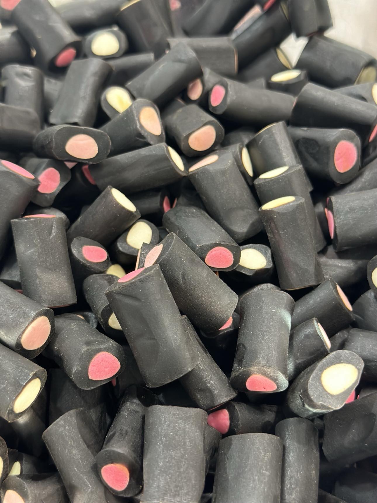 These are soft and chewy Dutch licorice tubes which are filled with a lightly sweet, creamy, fruity middle in various flavours.