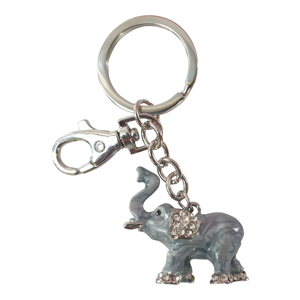 Full length of keychain 10 cm | Elephant 4.5 x 3.5 cm | Silver rhinestones | Hand painted