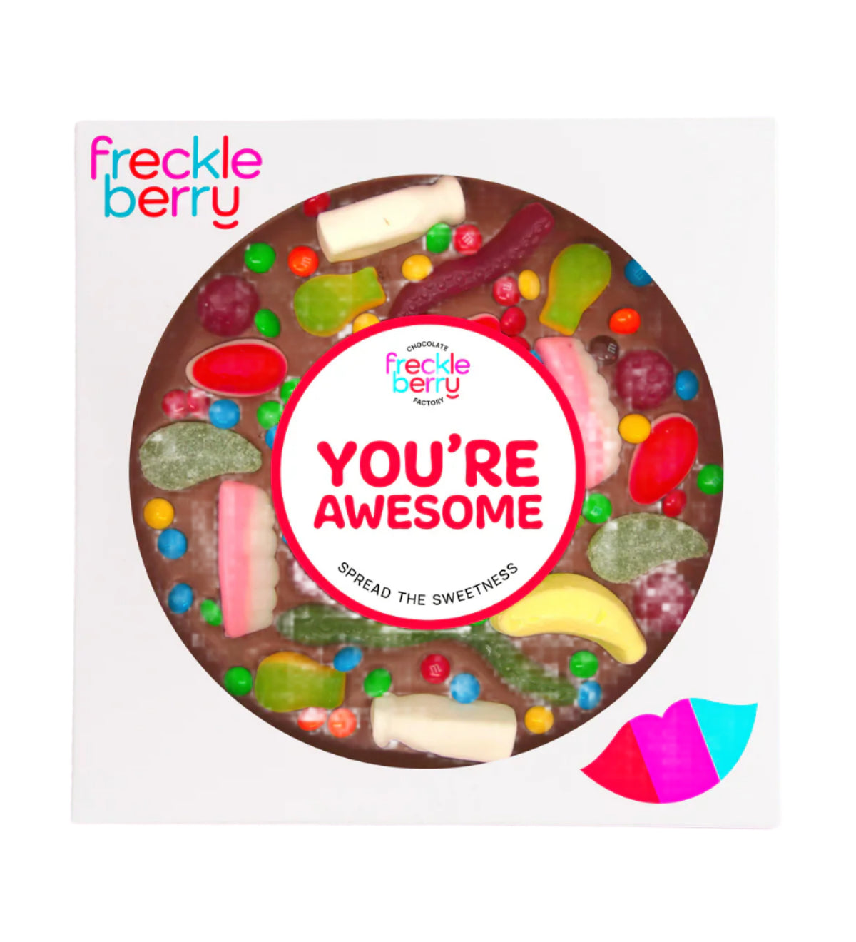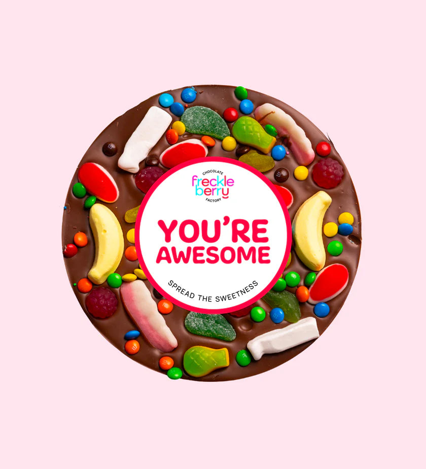 Our giant chocolate pizzas are lovingly handmade - perfect for telling someone that they're, like, really awesome and stuff! So go ahead, make their day with this sweet (literally!)