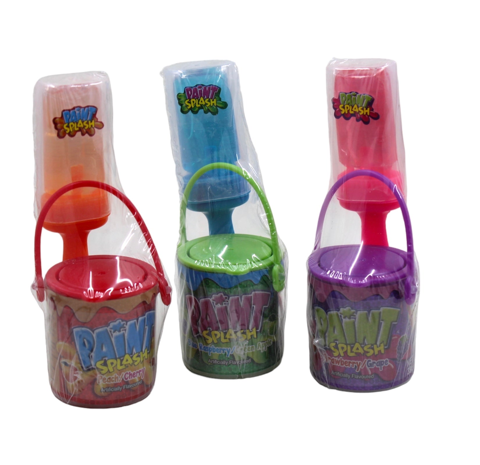 Fruit Flavoured sherbet candy filled in a paint tin shaped container with a paintbrush lollipop.