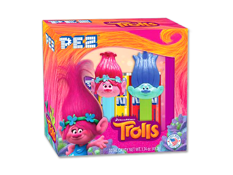 Featuring Poppy and Branch, the beloved characters from the Trolls movie, these keepsake PEZ® dispensers are packed full of yummy fruit-flavoured candy. Each package includes 2 PEZ dispensers and 6 rolls of candy in the following flavours: grape, cherry and strawberry.