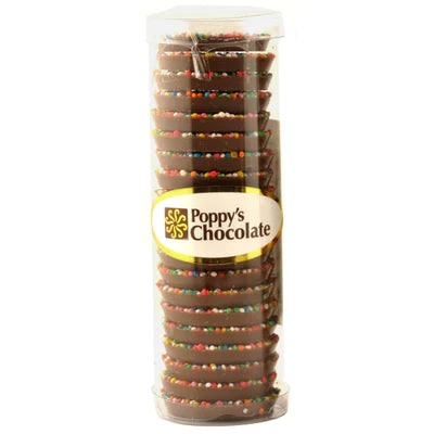 Regular size Sprinkles 7g each in milk chocolate beautifully presented in cylinders.