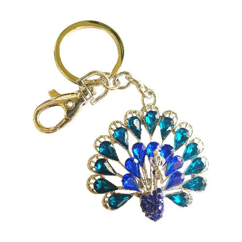 This exquisite keychain features a stunning blue peacock design adorned with sparkling bling, making it a charming addition to any keyring or bag chain. Impress your loved ones with this beautiful and unique bird gift. Express your style with this lovely accessory.