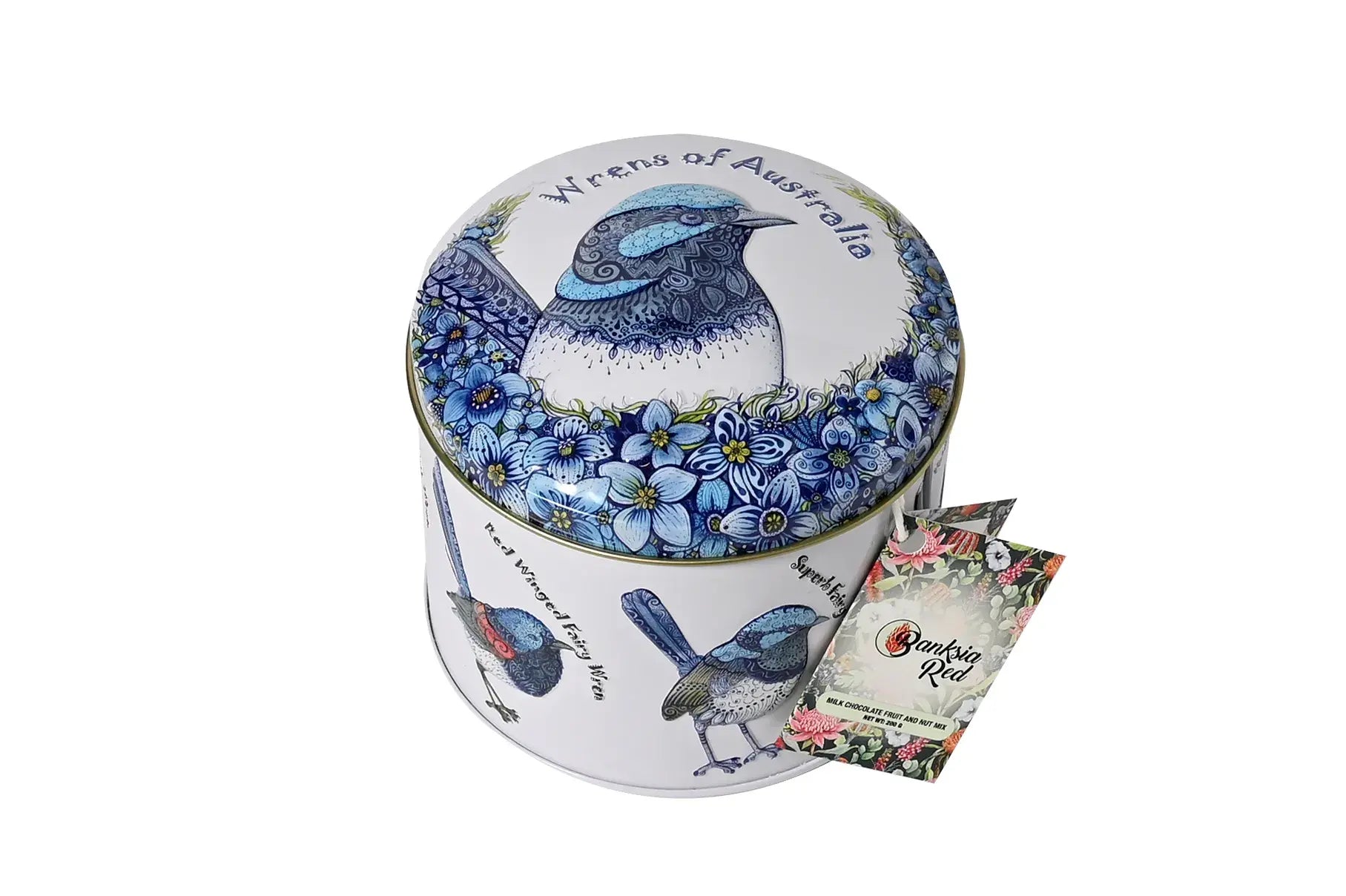 Wrens of Australia Embossed Tin Contains Chocolate Fruit & Nuts